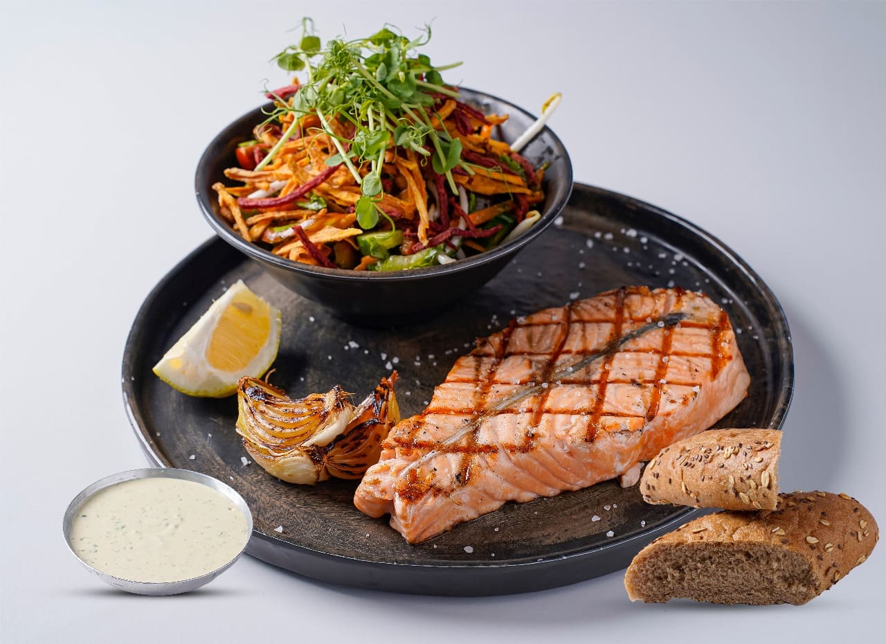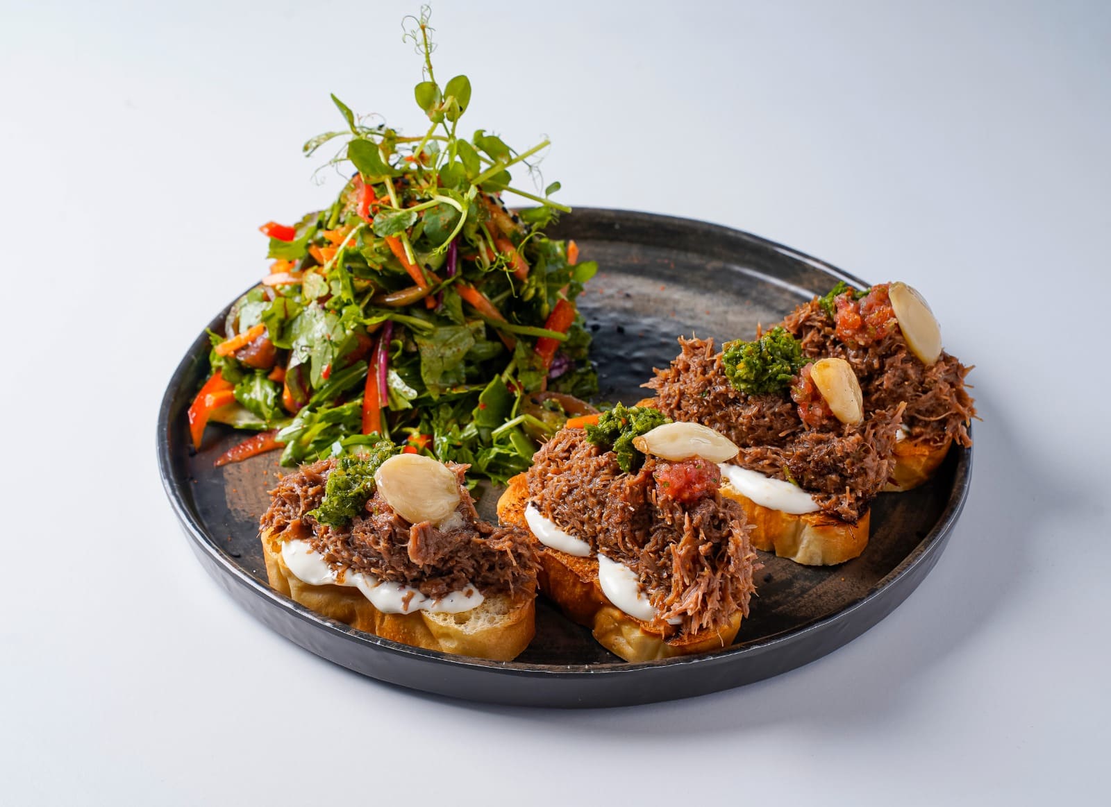 مكون من: تشمتشوري | صلصة | ديجونيز | خس | بندورة | مخيار مكبوس | بصل مشوي وفلفل مشوي.