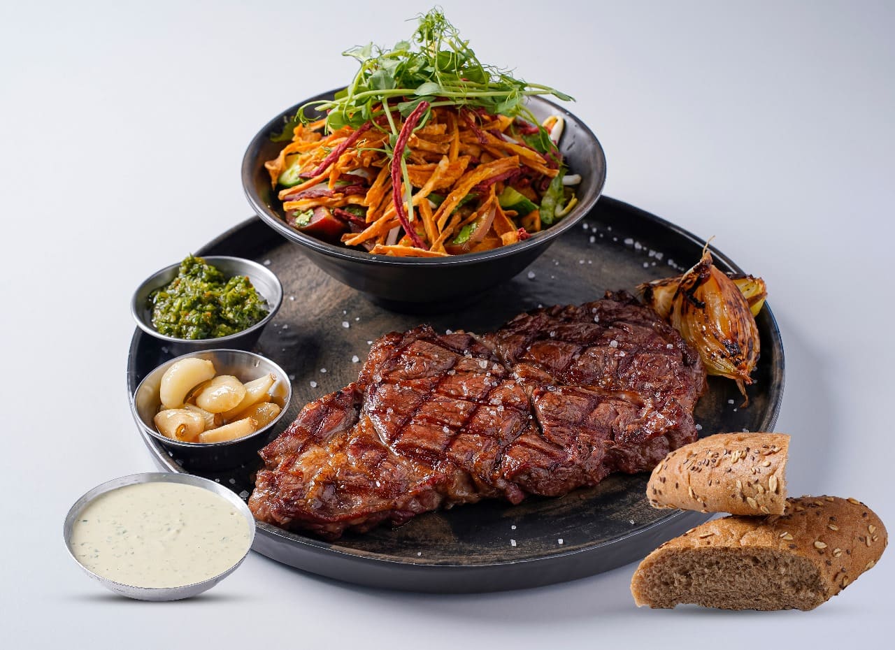 جابيتا شرائح انتريكوت | جبنة تشيدر | فلفل حار ,مكون من: تشمتشوري | صلصة | ديجونيز | خس | بندورة | مخيار مكبوس | بصل مشوي وفلفل مشوي.يشمل: شيبس ومخللات روستي.